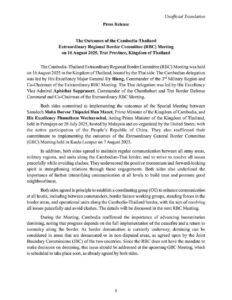 សេចក្តីប្រកាសព័ត៌មានស្តីពីលទ្ធផលនៃកិច្ចប្រជុំវិសាមញ្ញ គណៈកម្មាធិការកិច្ចការព្រំដែនថ្នាក់យោធភូមិភាគ កម្ពុជា-ថៃ (RBC) ថ្ងៃទី១៦ ខែសីហា ឆ្នាំ២០២៥ នៅខេត្តត្រាត ព្រះរាជាណាចក្រថៃ