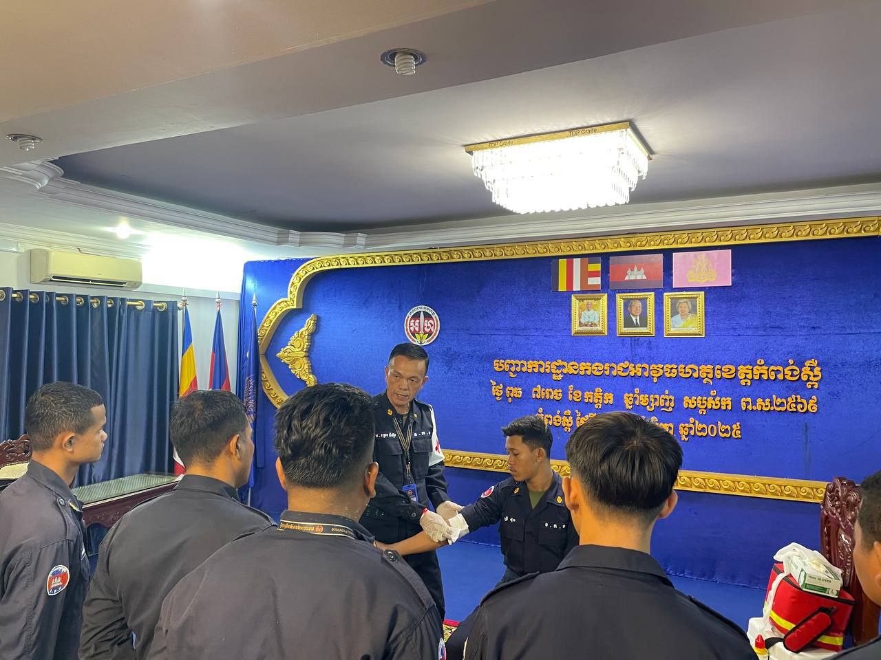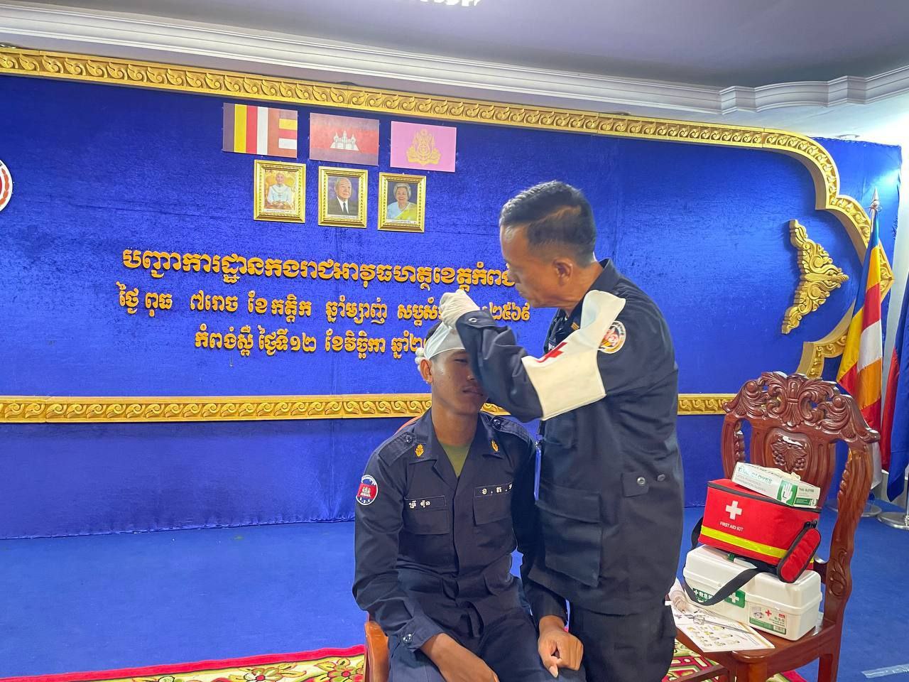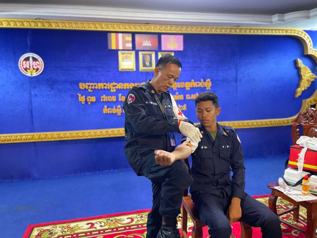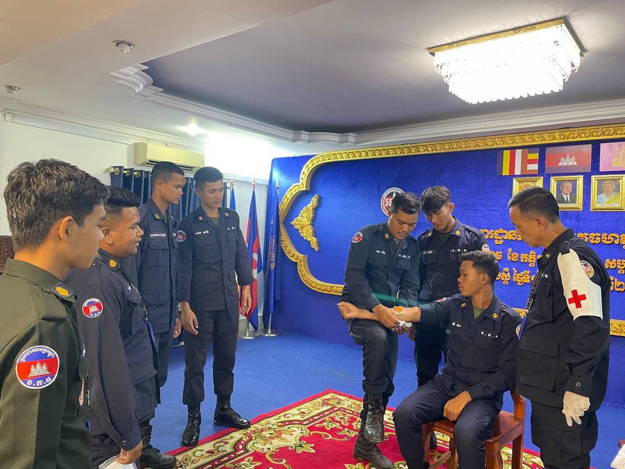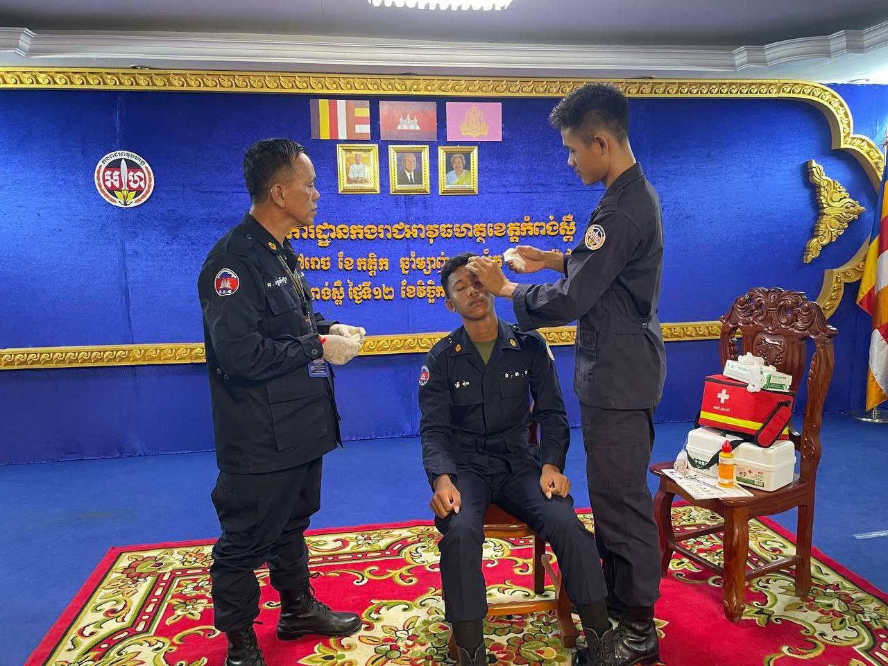 ខេត្តកំពង់ស្ពឺ៖ដោយអនុវត្តតាមបទបញ្ជារបស់ លោកឧត្តមសេនីយ៍ត្រី ម៉េង ស្រ៊ុន មេបញ្ជាការ កងរាជអាវុធហត្ថខេត្តកំពង់ស្ពឺ នាព្រឹកថ្ងៃទី១២ ខែវិច្ឆិការ ឆ្នាំ២០២៥នេះ លោកអនុសេនីយ៍ឯក ស្រេង លីហួរ នាយការិយាល័យសុខាភិបាល កងរាជអាវុធហត្ថខេត្តកំពង់ស្ពឺ បានដឹកនាំកម្លាំងហ្វឹកហាត់ បង្រៀន និងអនុវត្តន៏ជាក់ស្តែងស្តីពីការរុំរបួសលើសរីរាង្គដងខ្លួនដល់សិក្ខាកាម ស្ថិតនៅសាលប្រជុំ បញ្ជាការដ្ឋានកងរាជអាវុធហត្ថខេត្តកំពង់ស្ពឺ។