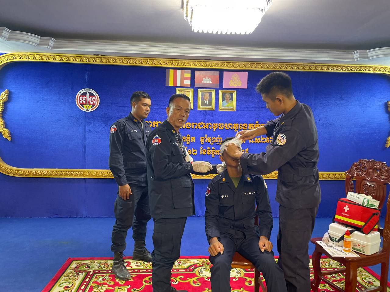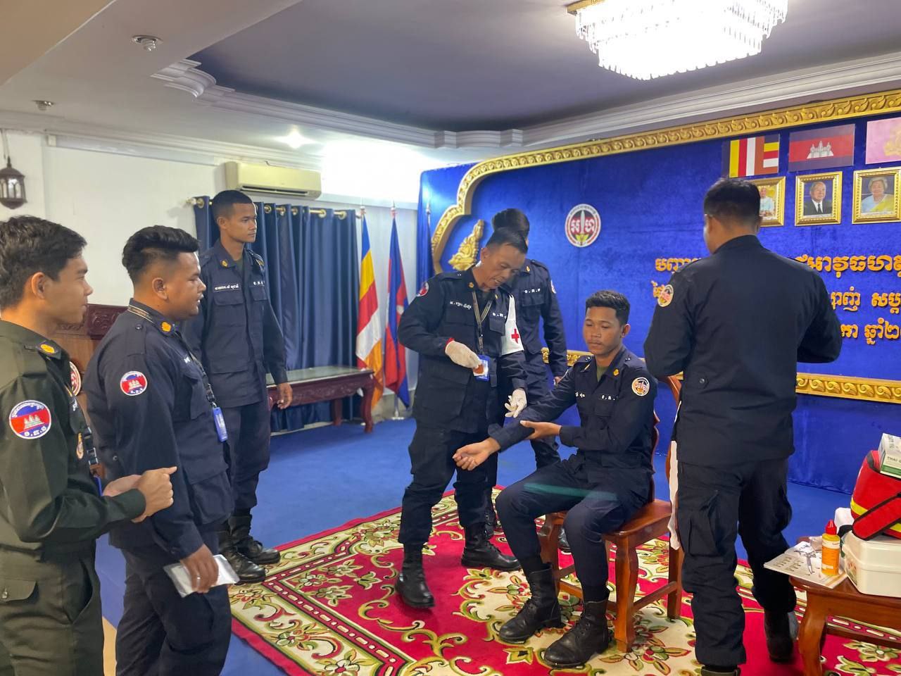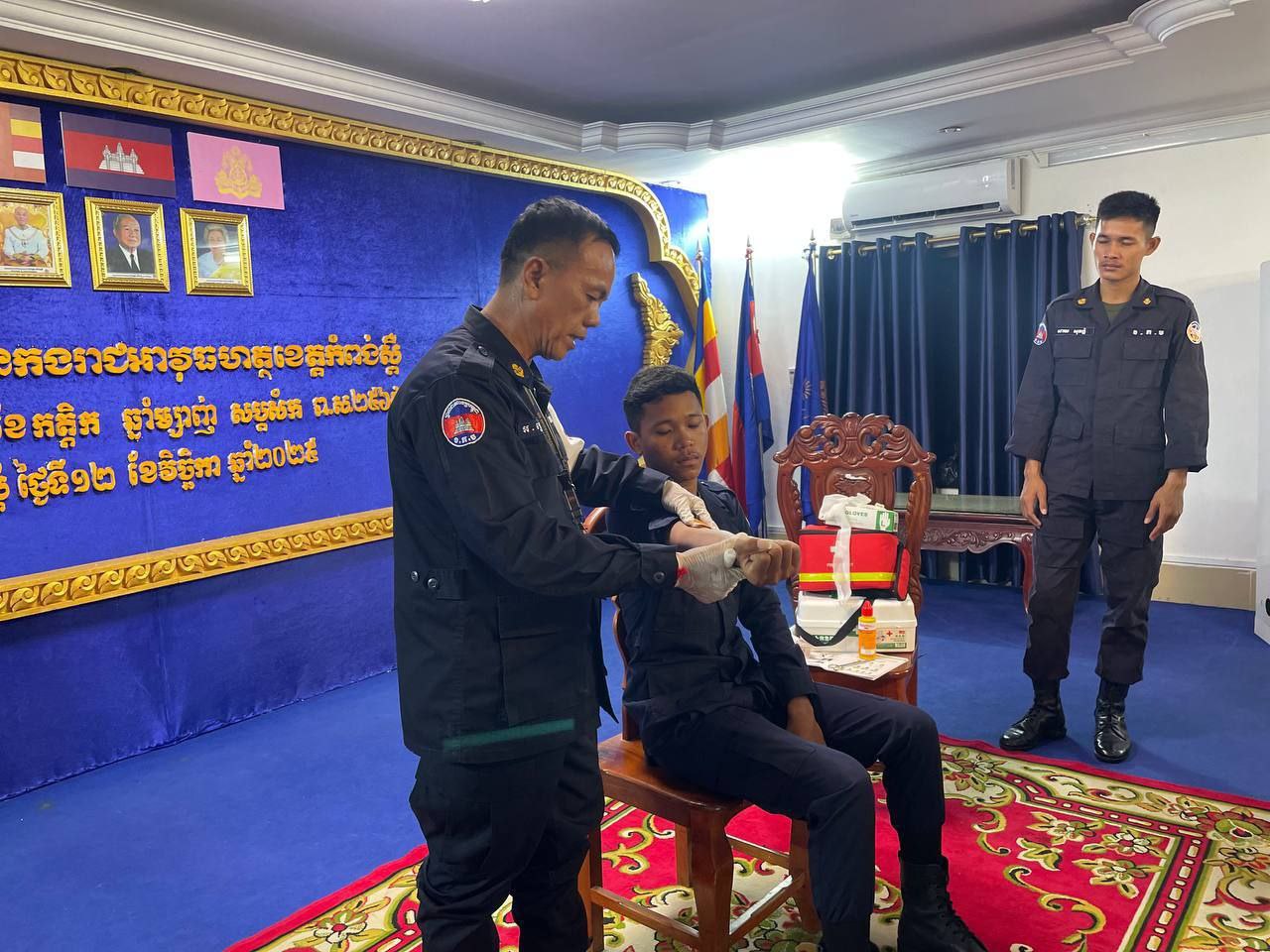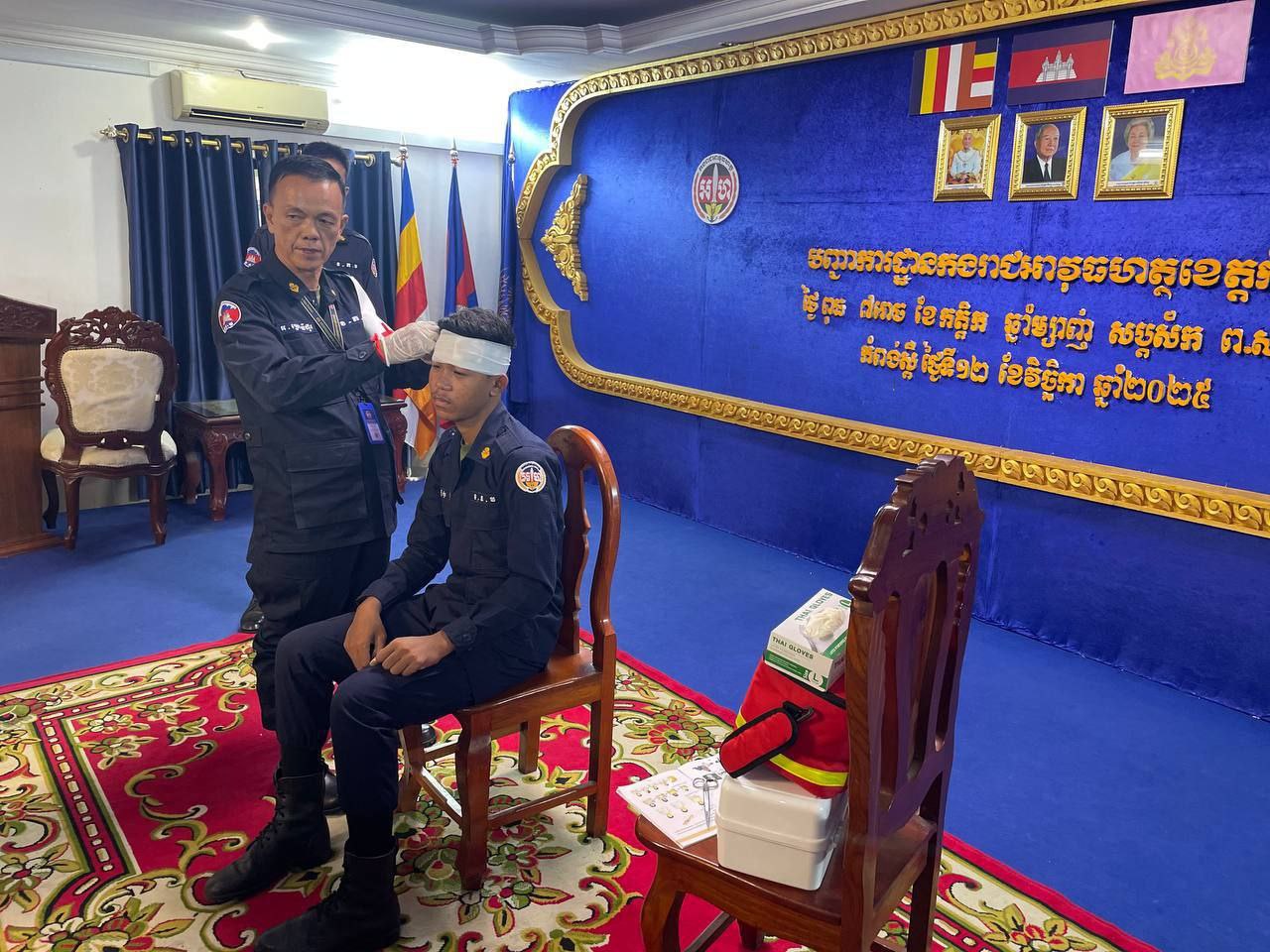 ខេត្តកំពង់ស្ពឺ៖ដោយអនុវត្តតាមបទបញ្ជារបស់ លោកឧត្តមសេនីយ៍ត្រី ម៉េង ស្រ៊ុន មេបញ្ជាការ កងរាជអាវុធហត្ថខេត្តកំពង់ស្ពឺ នាព្រឹកថ្ងៃទី១២ ខែវិច្ឆិការ ឆ្នាំ២០២៥នេះ លោកអនុសេនីយ៍ឯក ស្រេង លីហួរ នាយការិយាល័យសុខាភិបាល កងរាជអាវុធហត្ថខេត្តកំពង់ស្ពឺ បានដឹកនាំកម្លាំងហ្វឹកហាត់ បង្រៀន និងអនុវត្តន៏ជាក់ស្តែងស្តីពីការរុំរបួសលើសរីរាង្គដងខ្លួនដល់សិក្ខាកាម ស្ថិតនៅសាលប្រជុំ បញ្ជាការដ្ឋានកងរាជអាវុធហត្ថខេត្តកំពង់ស្ពឺ។