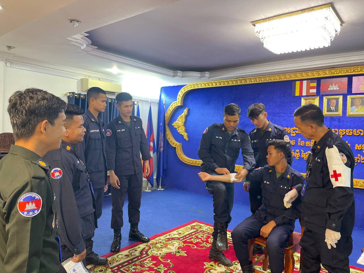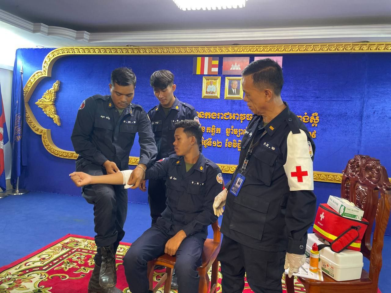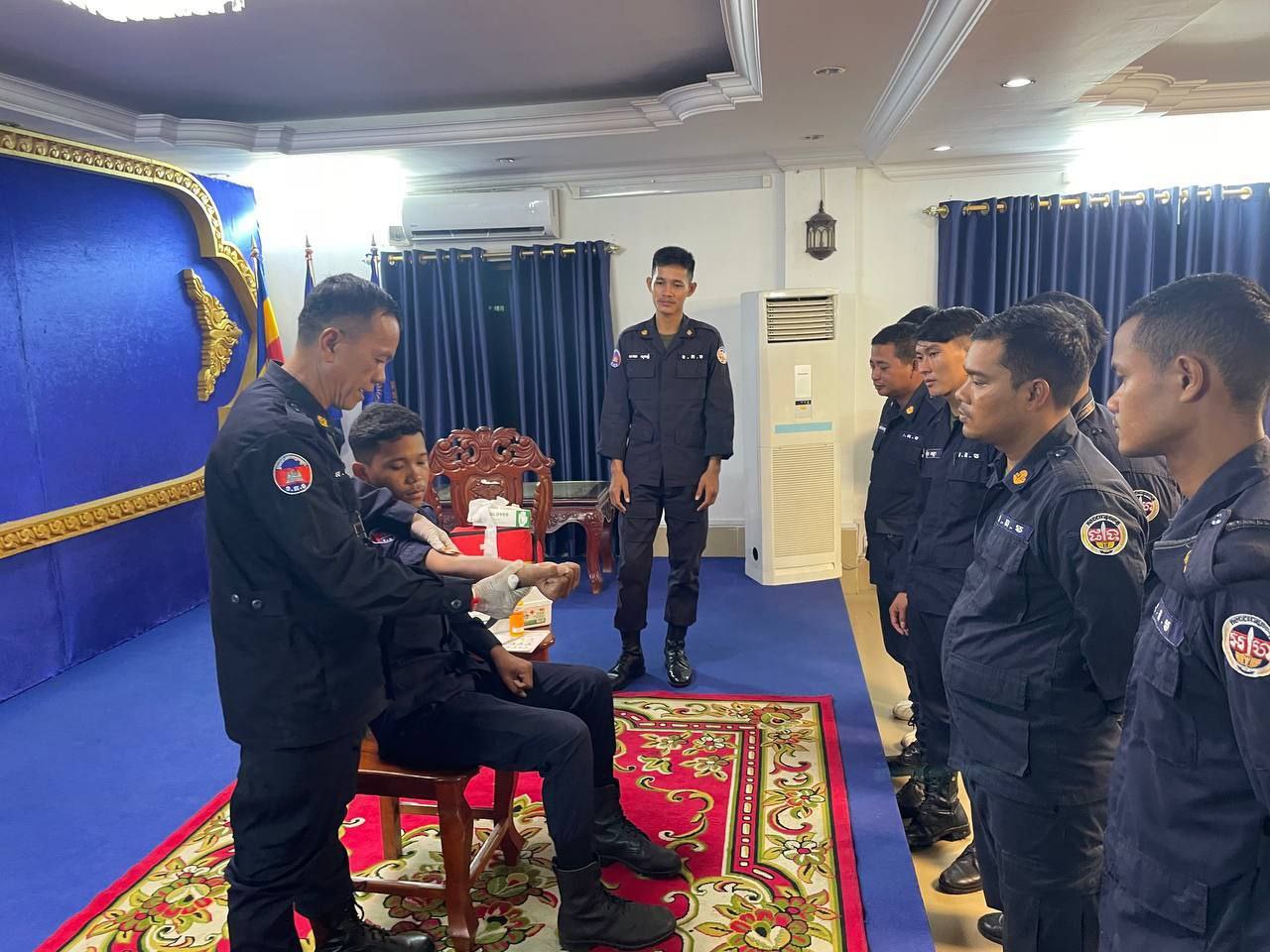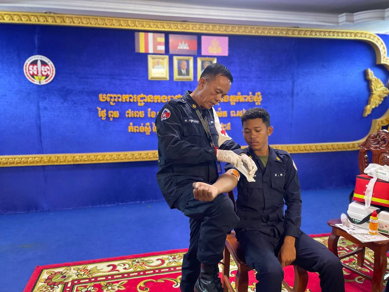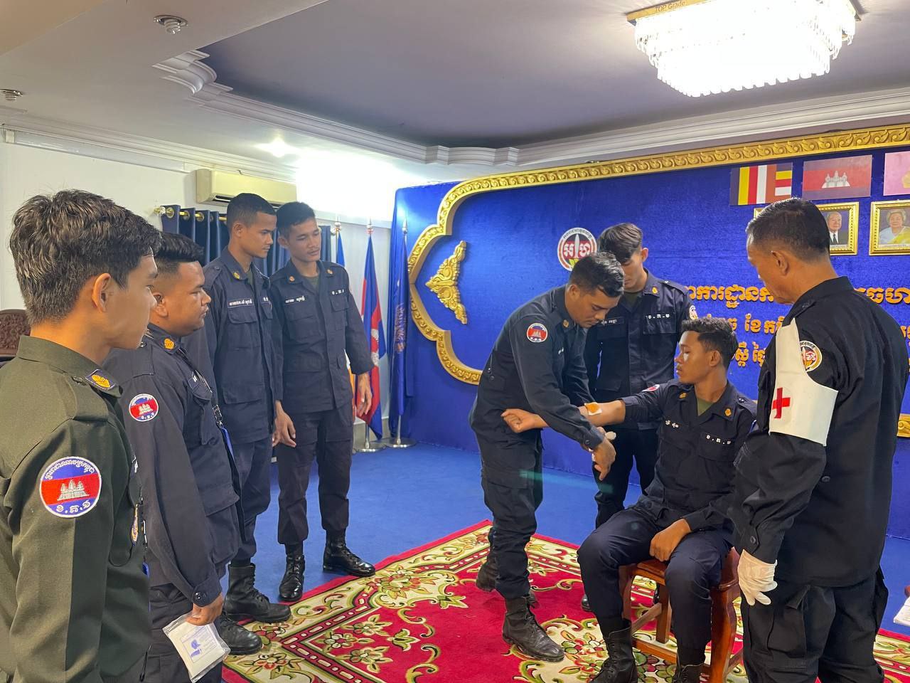 ខេត្តកំពង់ស្ពឺ៖ដោយអនុវត្តតាមបទបញ្ជារបស់ លោកឧត្តមសេនីយ៍ត្រី ម៉េង ស្រ៊ុន មេបញ្ជាការ កងរាជអាវុធហត្ថខេត្តកំពង់ស្ពឺ នាព្រឹកថ្ងៃទី១២ ខែវិច្ឆិការ ឆ្នាំ២០២៥នេះ លោកអនុសេនីយ៍ឯក ស្រេង លីហួរ នាយការិយាល័យសុខាភិបាល កងរាជអាវុធហត្ថខេត្តកំពង់ស្ពឺ បានដឹកនាំកម្លាំងហ្វឹកហាត់ បង្រៀន និងអនុវត្តន៏ជាក់ស្តែងស្តីពីការរុំរបួសលើសរីរាង្គដងខ្លួនដល់សិក្ខាកាម ស្ថិតនៅសាលប្រជុំ បញ្ជាការដ្ឋានកងរាជអាវុធហត្ថខេត្តកំពង់ស្ពឺ។