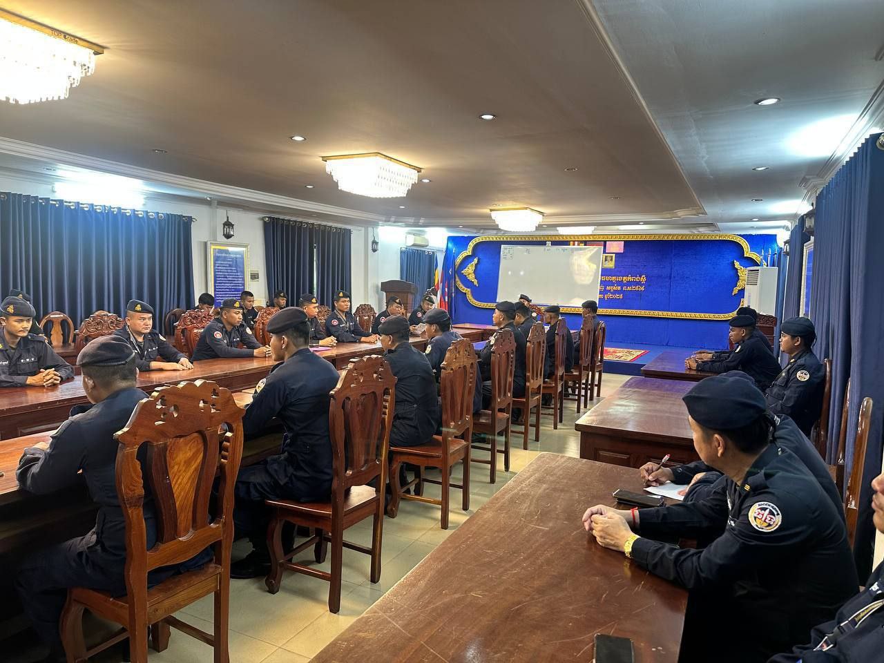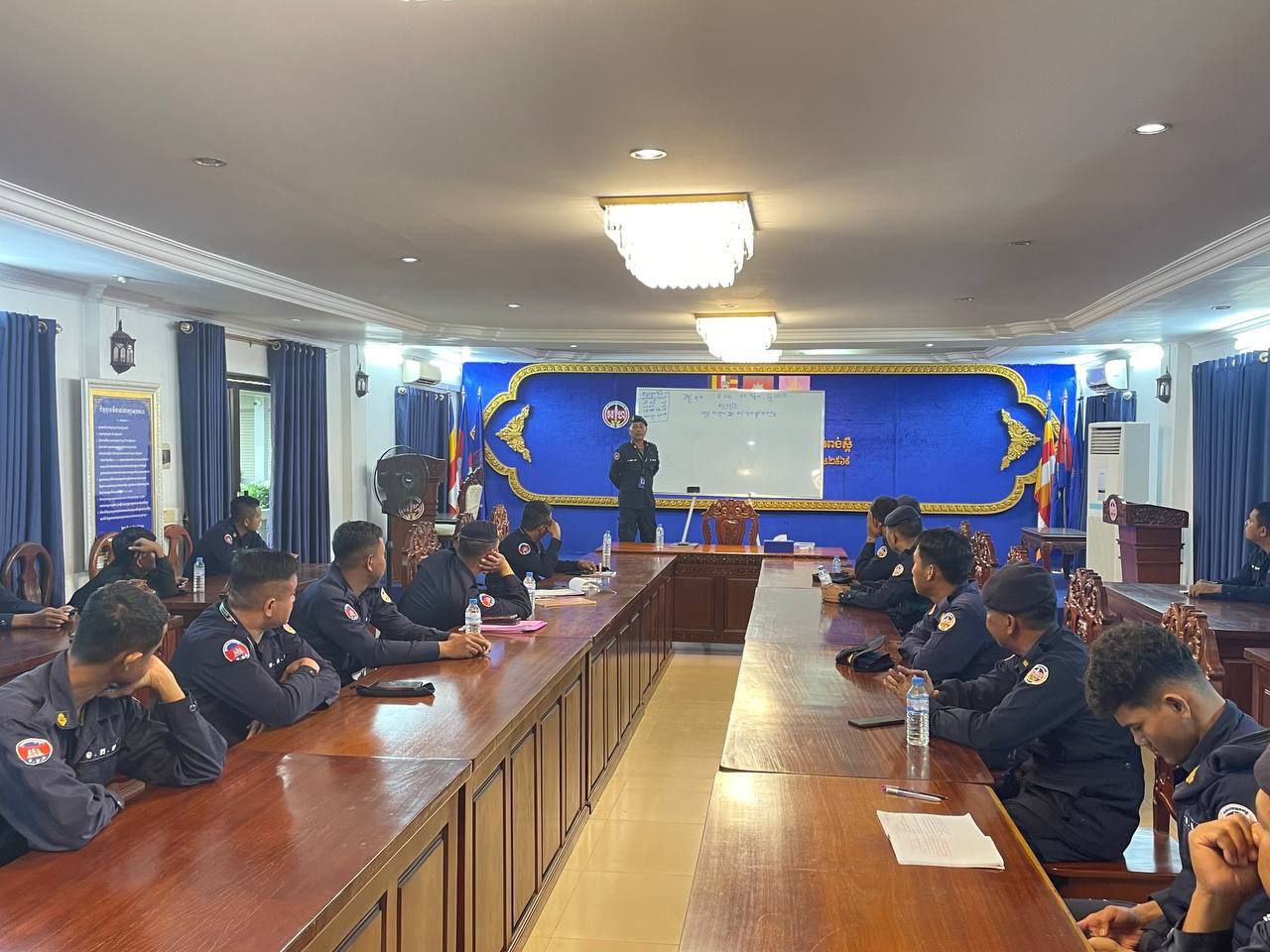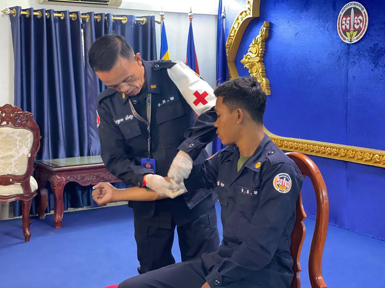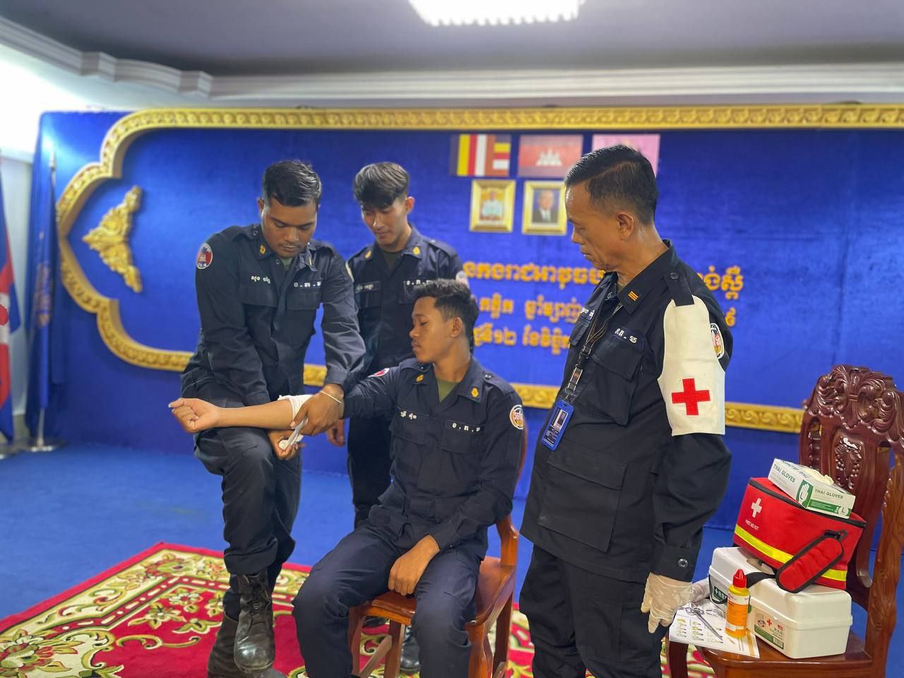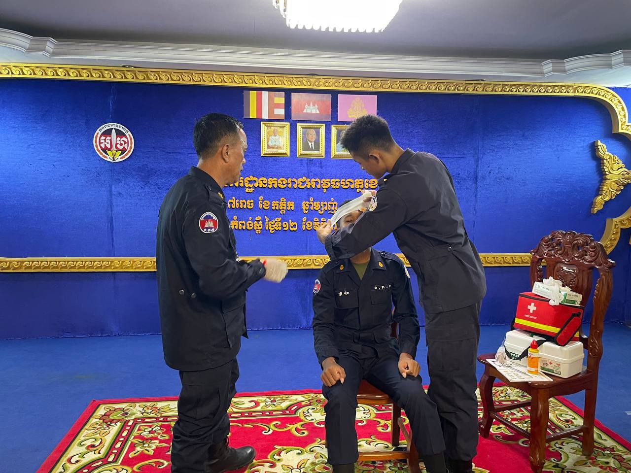 ខេត្តកំពង់ស្ពឺ៖ដោយអនុវត្តតាមបទបញ្ជារបស់ លោកឧត្តមសេនីយ៍ត្រី ម៉េង ស្រ៊ុន មេបញ្ជាការ កងរាជអាវុធហត្ថខេត្តកំពង់ស្ពឺ នាព្រឹកថ្ងៃទី១២ ខែវិច្ឆិការ ឆ្នាំ២០២៥នេះ លោកអនុសេនីយ៍ឯក ស្រេង លីហួរ នាយការិយាល័យសុខាភិបាល កងរាជអាវុធហត្ថខេត្តកំពង់ស្ពឺ បានដឹកនាំកម្លាំងហ្វឹកហាត់ បង្រៀន និងអនុវត្តន៏ជាក់ស្តែងស្តីពីការរុំរបួសលើសរីរាង្គដងខ្លួនដល់សិក្ខាកាម ស្ថិតនៅសាលប្រជុំ បញ្ជាការដ្ឋានកងរាជអាវុធហត្ថខេត្តកំពង់ស្ពឺ។