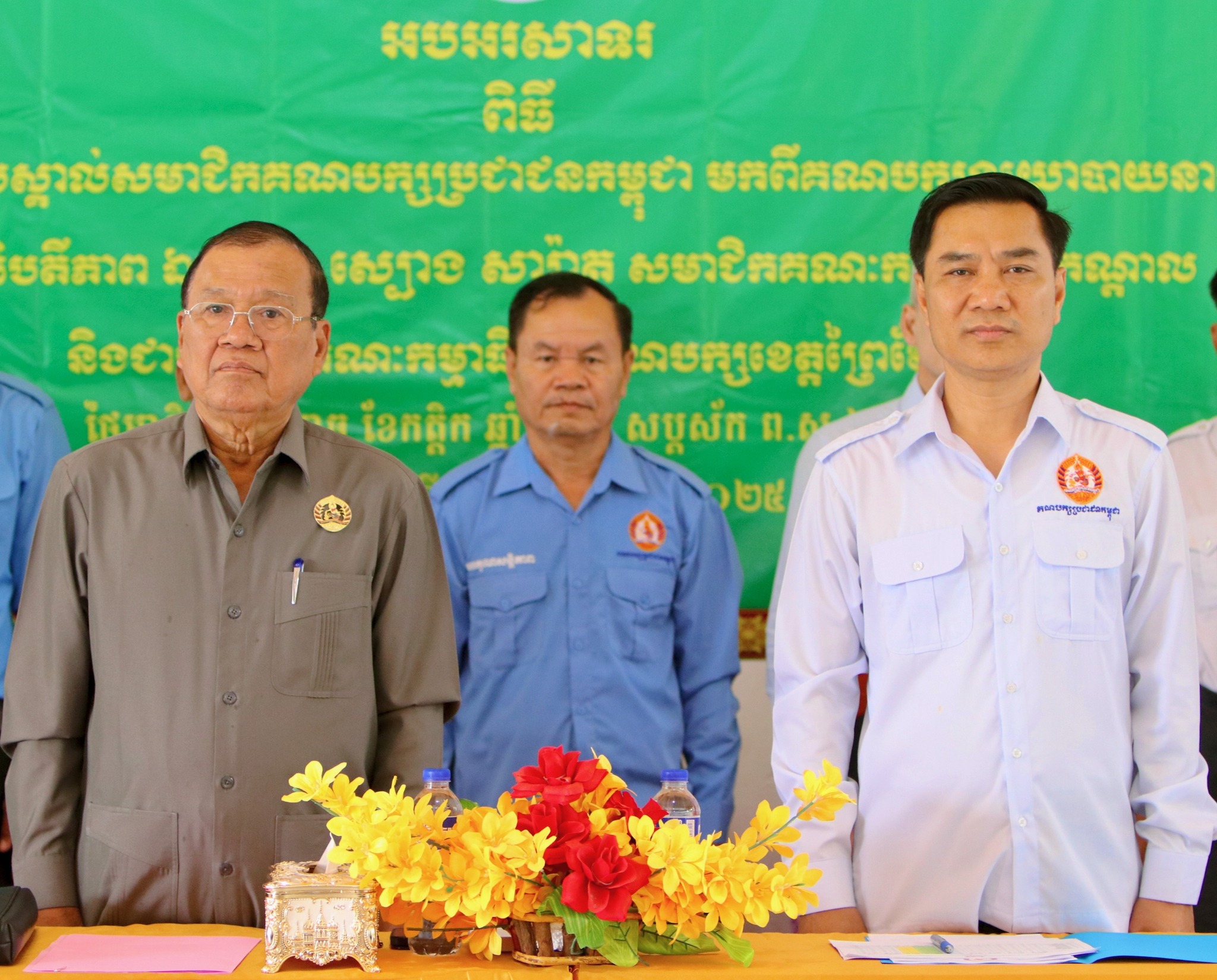 ខេត្តព្រៃវែង៖ នាព្រឹកថ្ងៃទី១៦ ខែវិច្ឆិកា ឆ្នាំ២០២៥នេះ នៅទីស្នាក់ការគណបក្សប្រជាជនកម្ពុជាស្រុកមេសាង ខេត្តព្រៃវែង ឯកឧត្ដម យូ សិរីវុឌ្ឍ បេសកជនពិសេសរបស់សម្តេចអគ្គមហាសេនាបតីតេជោ ហ៊ុន សែន ប្រធានគណបក្សប្រជាជនកម្ពុជា និងជាប្រធានក្រុមការងារចលនាកសាងសមាជិកគណបក្សនៅមូលដ្ឋានរាជធានី~ខេត្ត និងឯកឧត្តម ស្បោង សារ៉ាត សមាជិកគណៈកម្មាធិការកណ្តាល និងជាប្រធានគណៈកម្មាធិការគណបក្សខេត្តព្រៃវែង ព្រមទាំងឯកឧត្តម លោកជំទាវ លោក លោកស្រី គណប្រតិភូ អញ្ជើញចូលរួមជាអធិបតីពិធីប្រកាសទទួលស្គាល់សមាជិកថ្មី ដែលមកពីគណបក្សប្រឆាំង និងគណបក្សនយោបាយនានាចំនួន១៩៦នាក់។