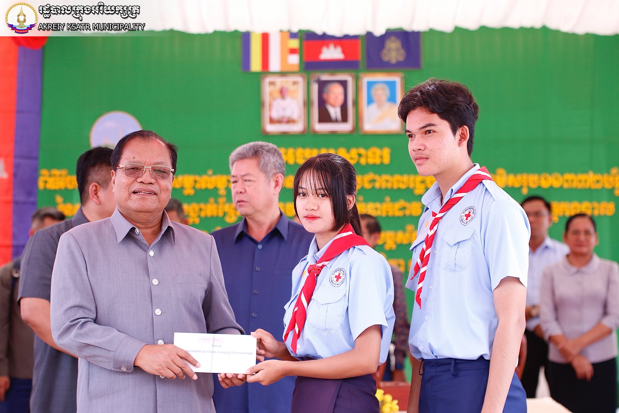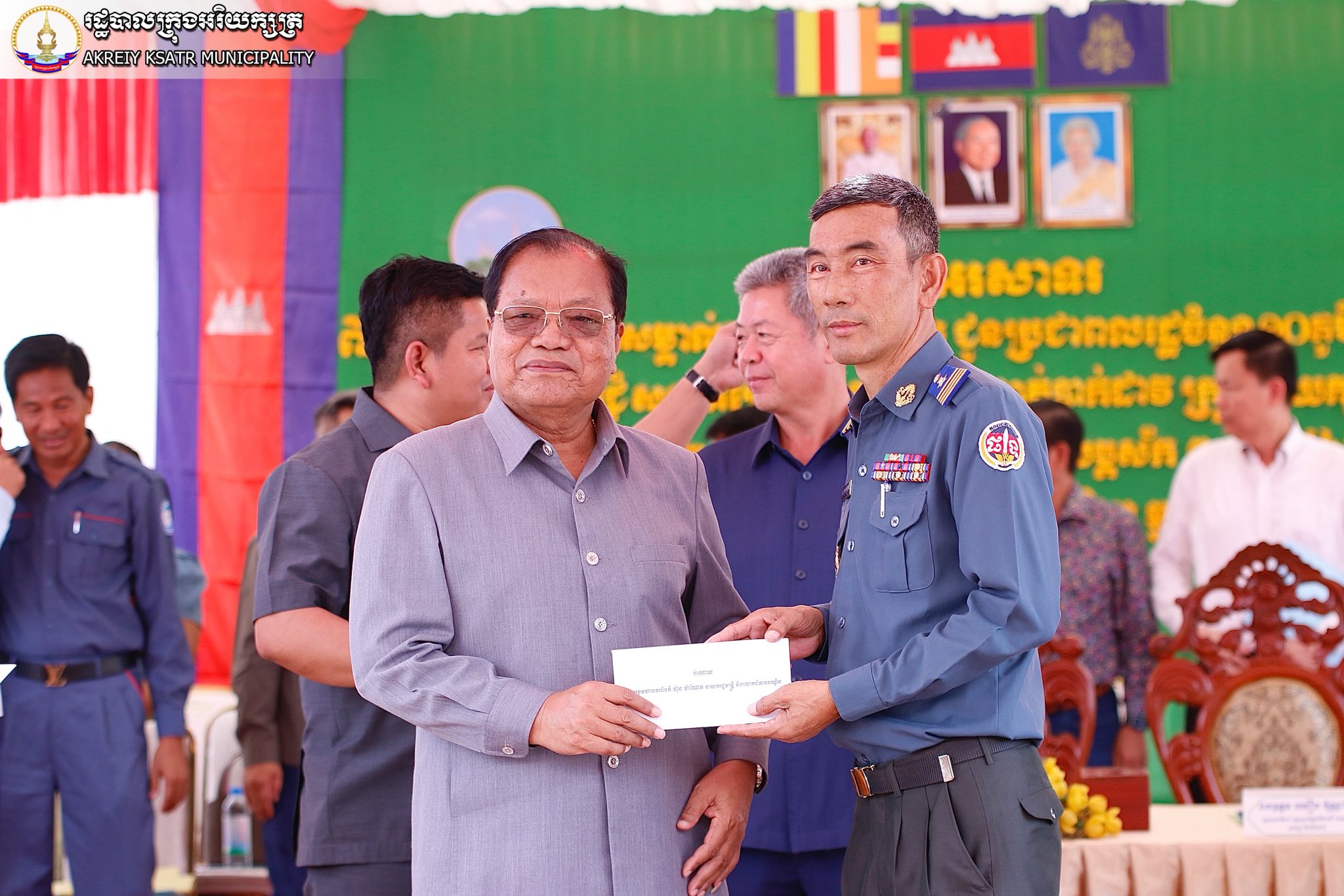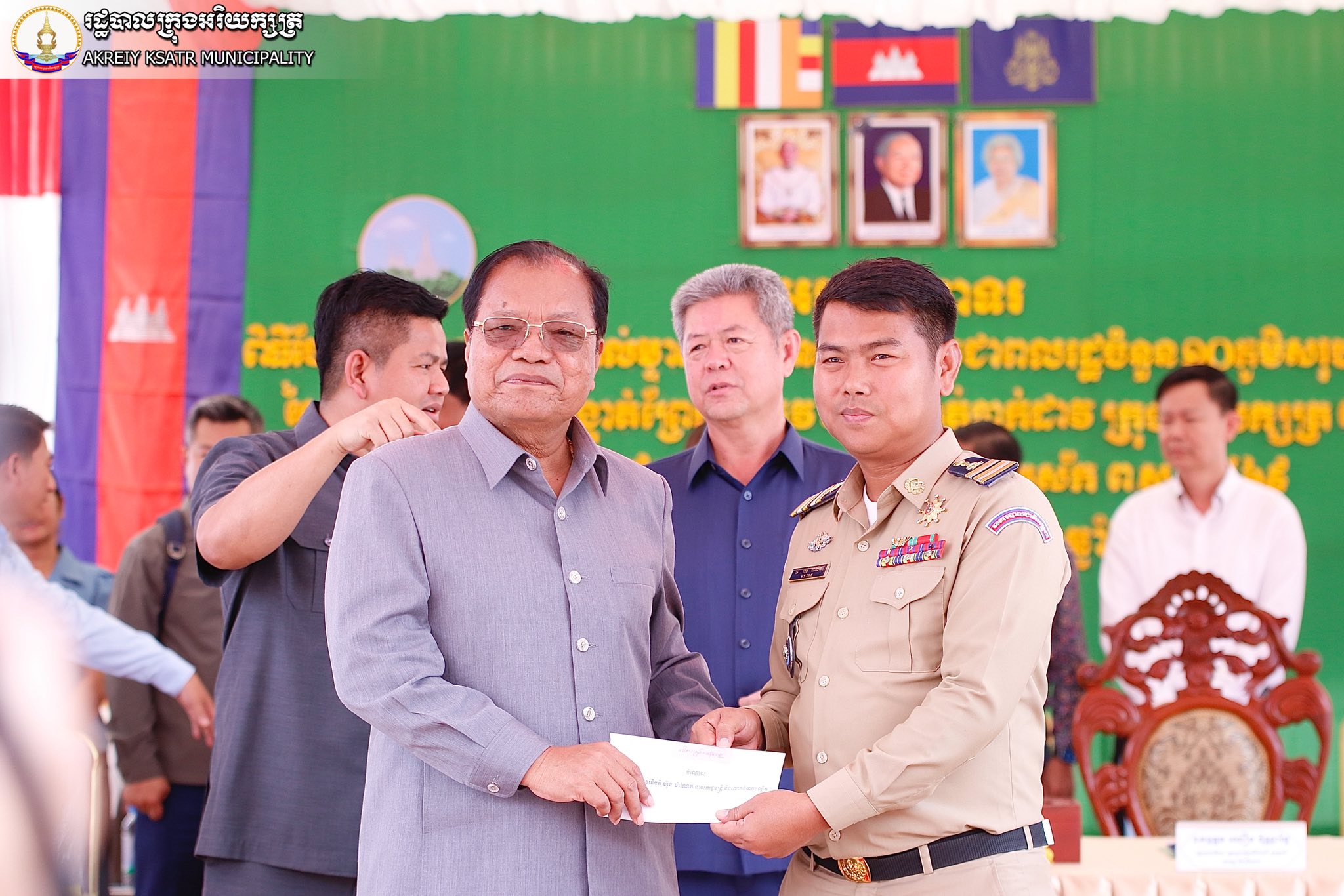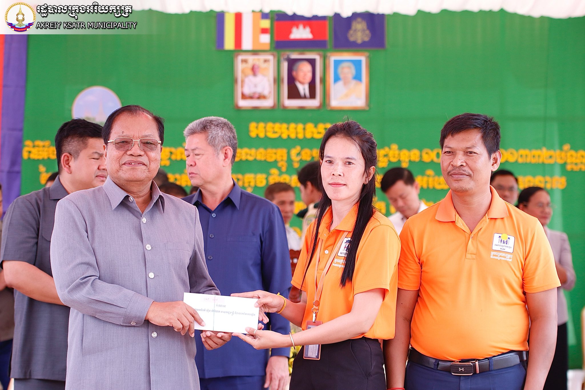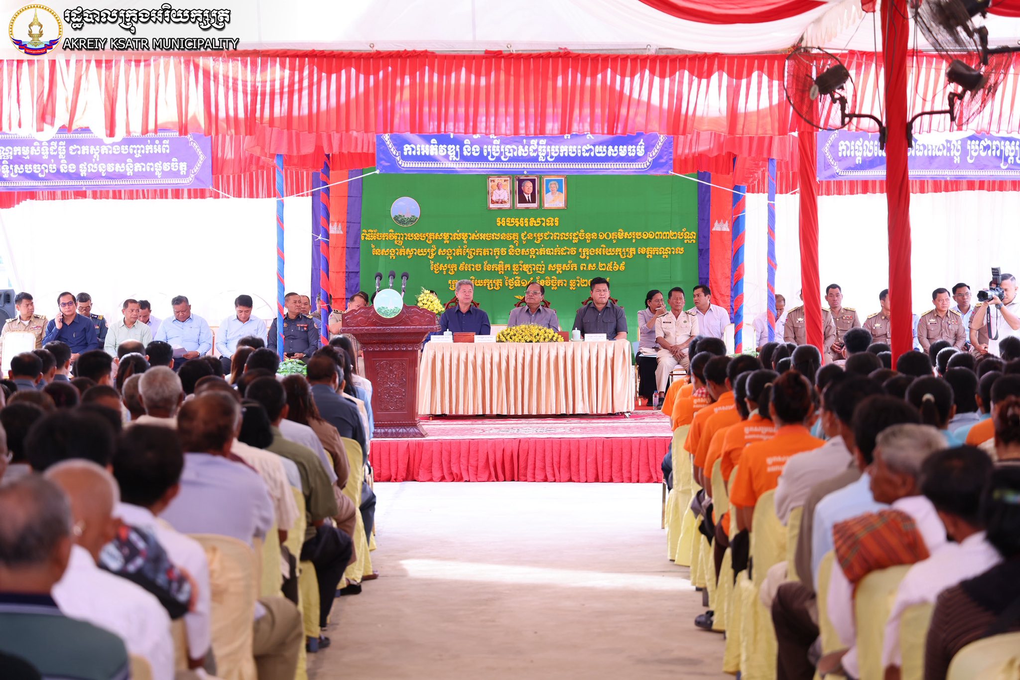 ពិធីចែកវិញ្ញាបនបត្រសម្គាល់ម្ចាស់អចលនវត្ថុចំនួន ១១,៣៣២ប័ណ្ណ ជូនប្រជាពលរដ្ឋចំនួន ១០ភូមិ នៃសង្កាត់ស្វាយជ្រំ សង្កាត់ព្រែកតាកូវ និងសង្កាត់បាក់ដាវ ក្រុងអរិយក្សត្រ ខេត្តកណ្តាល ក្រោមអធិបតីភាពដ៏ខ្ពង់ខ្ពស់ ឯកឧត្តមឈឿន ប៊ុណ្ណារ័ត្ន រដ្ឋលេខាធិការក្រសួងដែនដី នគររូបនីយកម្ម និងសំណង់ ឯកឧត្តម នូ សាខន ប្រធានក្រុមប្រឹក្សាខេត្ត និងឯកឧត្តម គួច ចំរេីន អភិបាល នៃគណ:អភិបាលខេត្តកណ្ដាល ដែលពិធីនេះប្រារព្ធធ្វេីឡេីងនៅបរិវេនសាលាក្រុងអរិយក្សត្រ ។